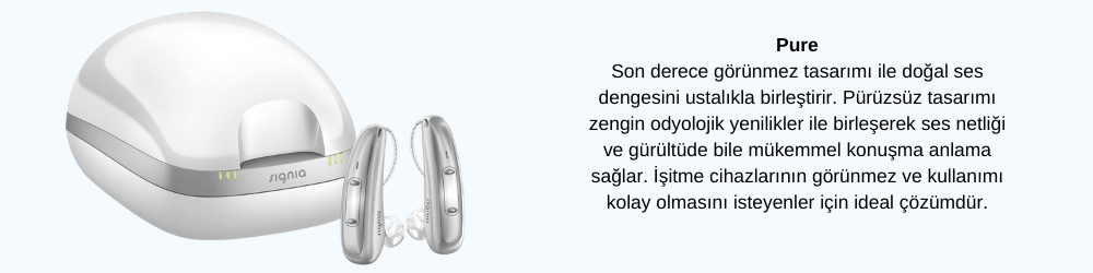 Signia Pure tasarımı oldukça basit,mükemmel bir işitme deneyimi için ayar yapmak zorunda değilsiniz.